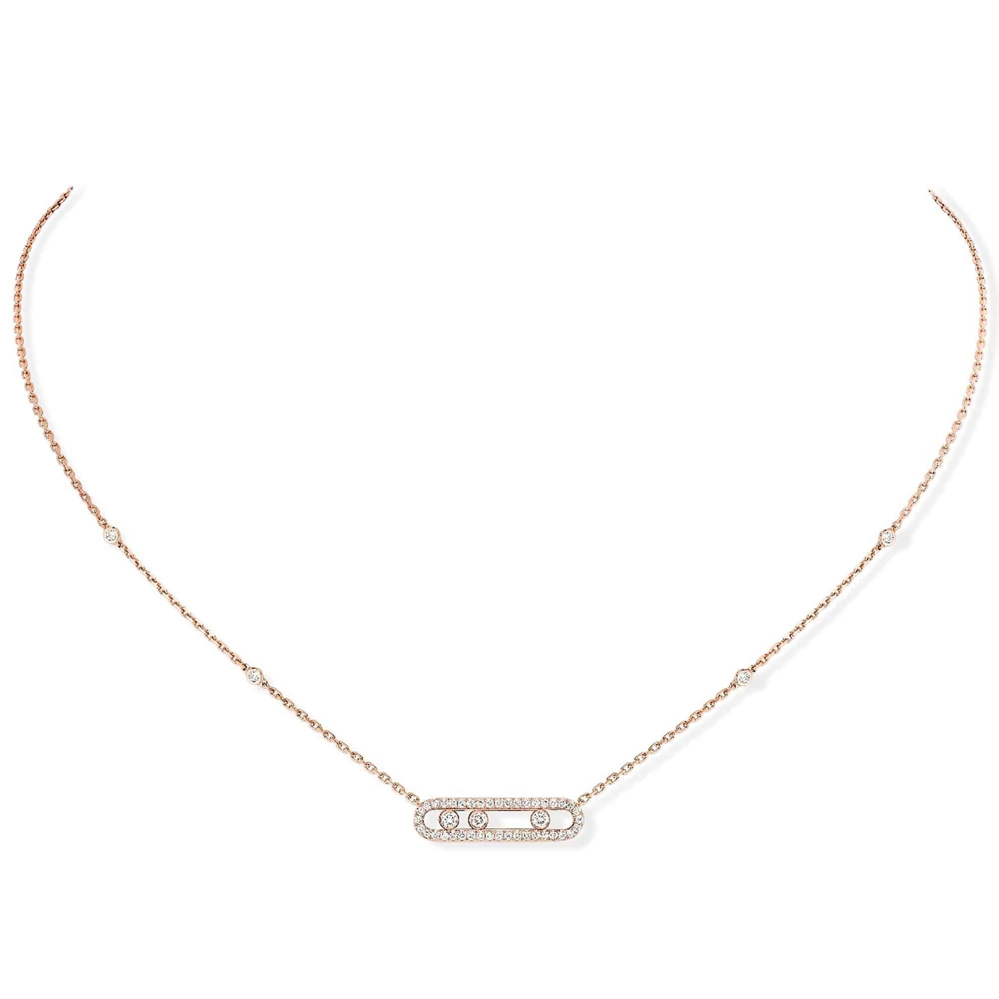 Messika 18ct Pink Gold Baby Move Pave Three Diamonds Necklace 04322