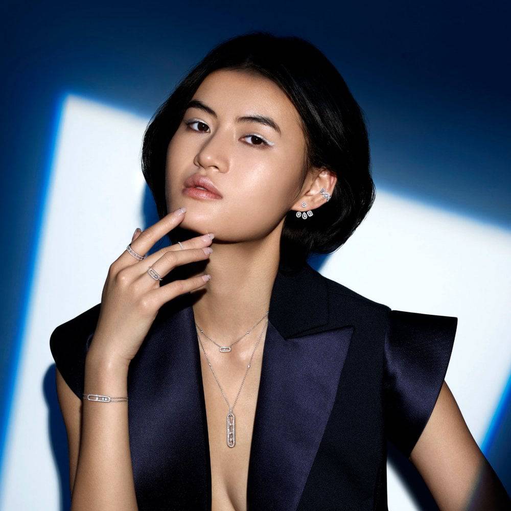 - Adorned with an 18ct yellow gold tag bearing the “Messika” lettering