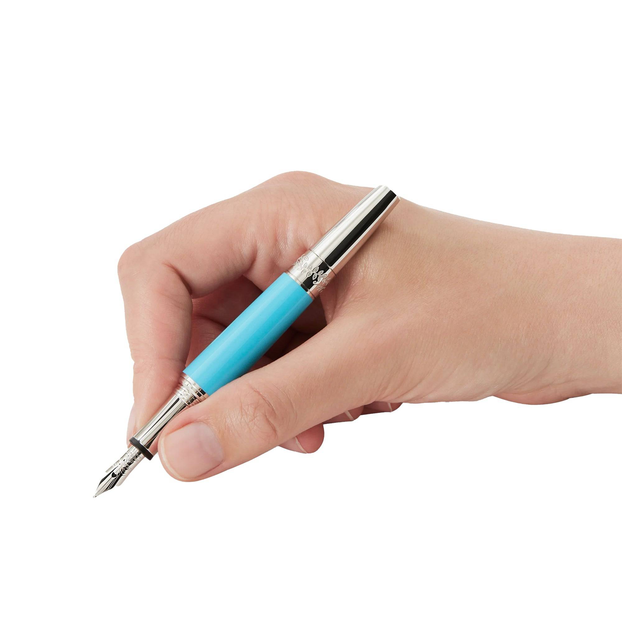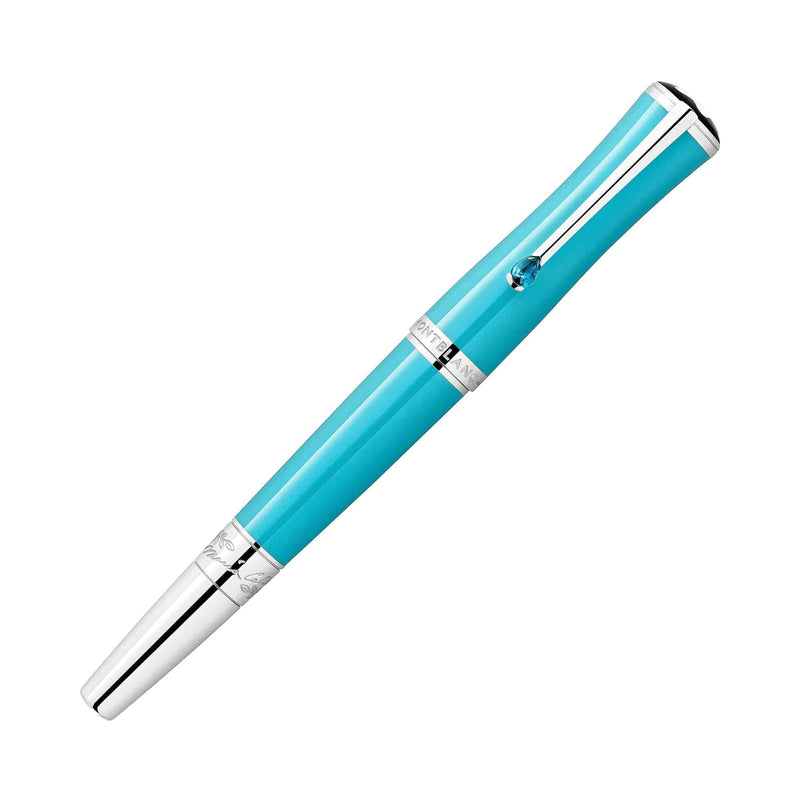 This Montblanc Muses Maria Callas Special Edition fountain pen is dedicated to one of the most charismatic sopranos of the 20th century and appreciated style icon. With her talent, passion and personality, she embodied a certain ideal of the operatic diva. The edition highlights one of her favourite colours, turquoise and made in the precious resin of the cap and barrel. Reflecting Maria Callas’s graceful beauty with this pen it is a slender, elegant silhouette. A beautiful added addiction In memory of her sea-encircled Greek homeland, the platinum-coated clip is decorated with a stone whose colour is reminiscent of the radiant turquoise blue of the Aegean Sea.