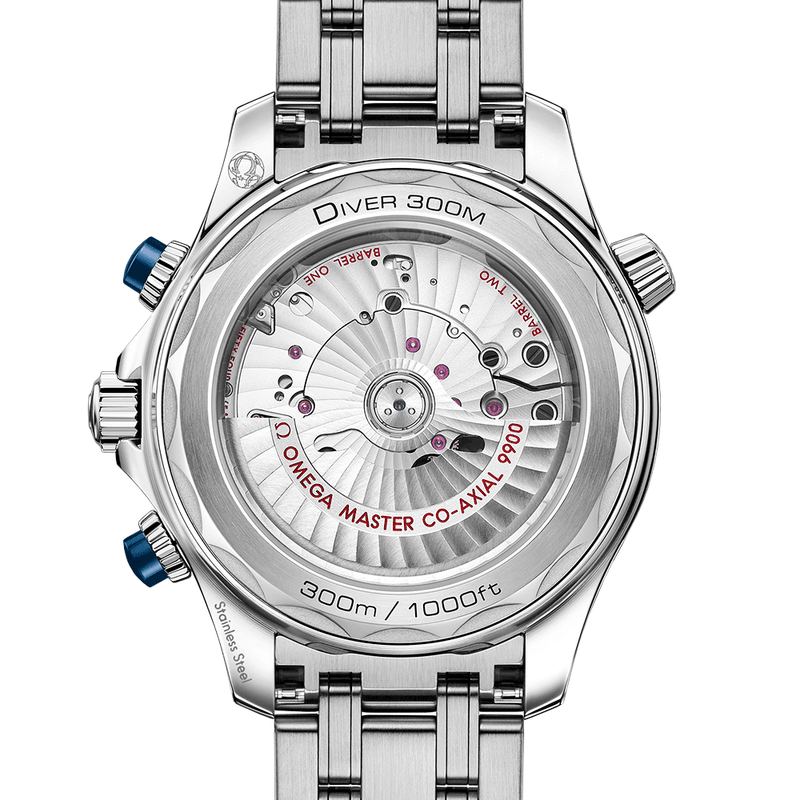Discover the Omega Seamaster Diver 300m 210.30.44.51.06.001, a remarkable 44mm stainless steel watch featuring a grey/blue dial and a matching stainless steel bracelet. The watch's dial showcases a sun-brushed PVD chrome ceramic laser engraved finish with blued steel, luminous hands, and hour markers, along with a convenient date display at the 6 o'clock position. Designed for exceptional performance, this timepiece offers water resistance up to 300 meters and is protected by a durable sapphire crystal glass. Powered by the Omega Master Chronometer Calibre 9900 automatic chronograph movement, this watch is a perfect blend of style and functionality.