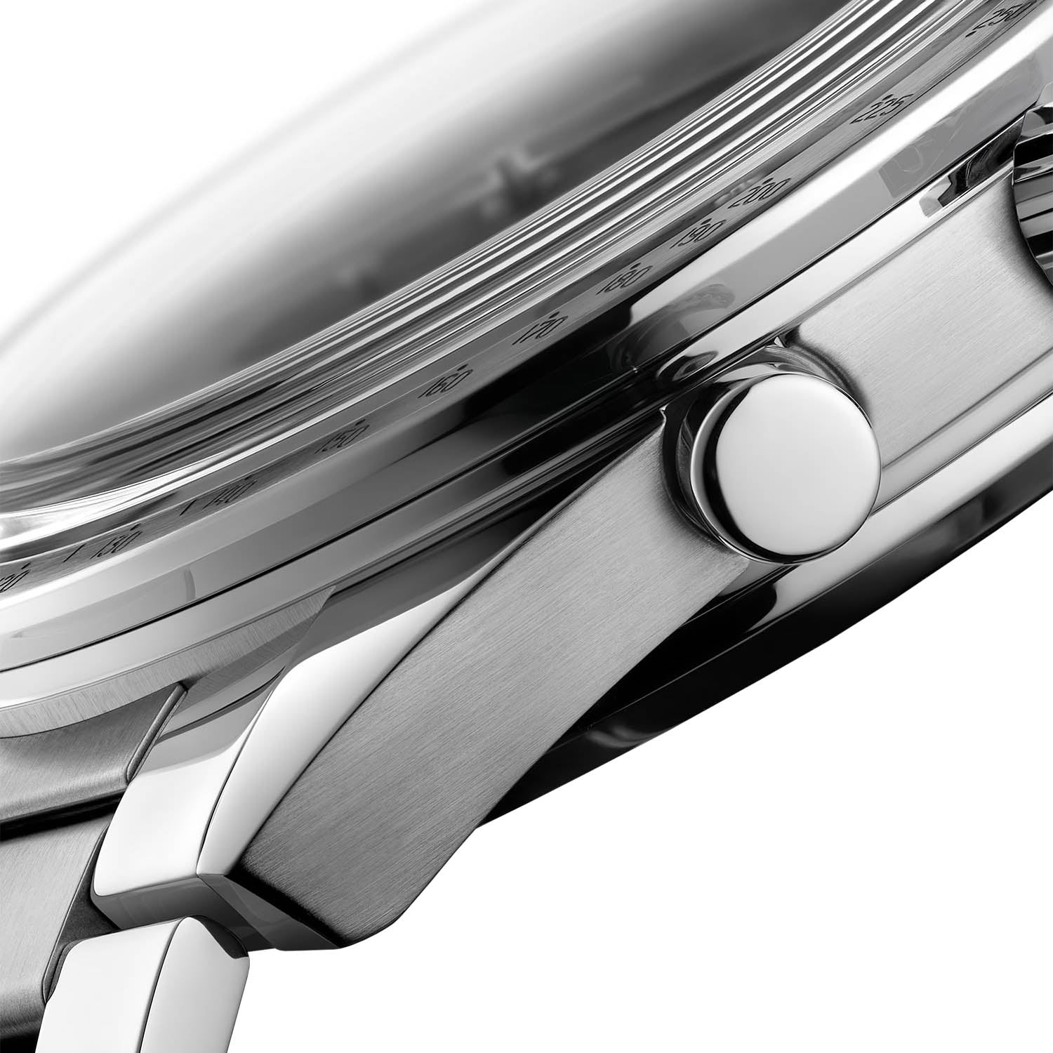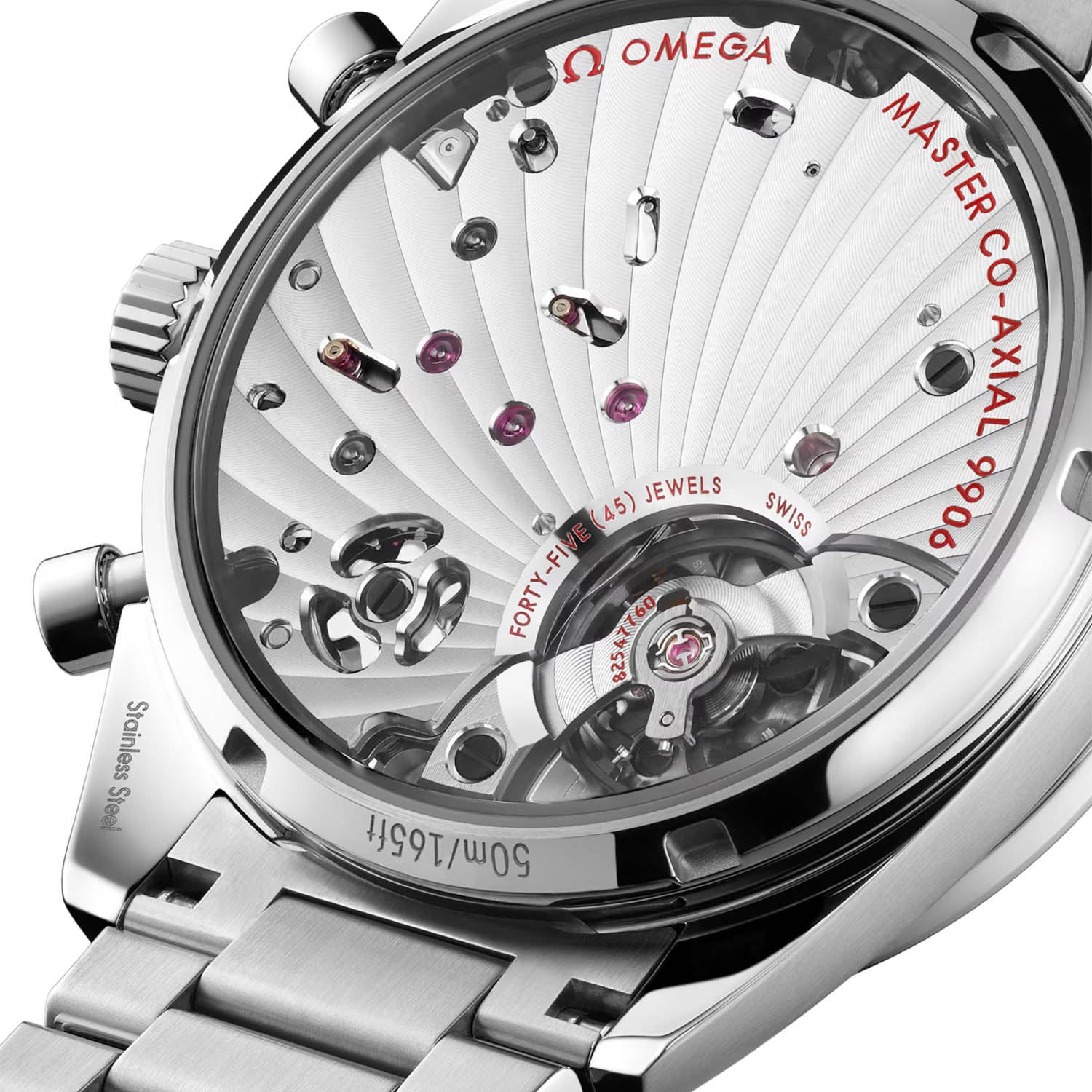 The Omega Speedmaster ’57 watch is inspired by the iconic design of the 1957 model. Exuding an authentic style based on all the classic and much-loved elements of the original, this 40.5mm men’s Speedmaster watch is crafted from stainless steel and is integrated with 50-meter water resistance, providing a dry environment for one of Omega ‘s manual winding calibres to perform effortlessly inside. This men’s Omega Speedmaster ’57 Chronograph watch displays the time on a rich black dial protected by a piece of anti-reflective and scratch-resistant sapphire crystal glass. The same material is used on the back of the case, creating an exhibition window for the wearer to observe the models’ beating heart. The black dial of the Omega Speedmaster ’57 watch is adorned with crisp hour markers and hands with beige luminous material, along with a date window at 6 o’clock. This feature balances a 12-hour totaliser at 3 o’clock and a 60-minute counter at 9 o’clock. The Calibre 9906 beats away effortlessly inside the steel case of this Speedmaster ’57 watch, providing a 60-hour power reserve. The iconic chronograph watch is also fitted on a stainless steel bracelet with a patented comfort release adjustment system.