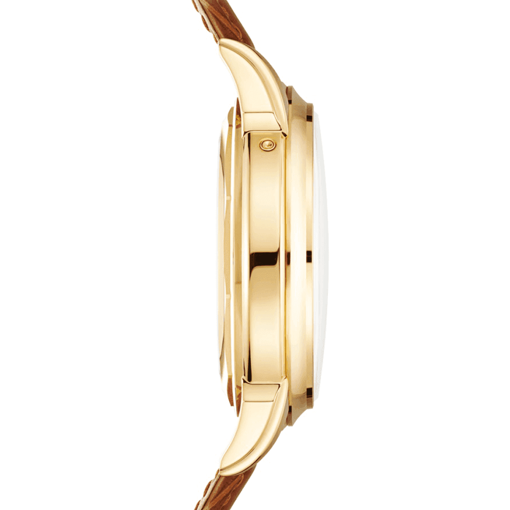 - Brown alligator leather strap with 18ct yellow gold fold-over clasp
