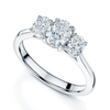 Belonging to our online collection of diamond rings, this three stone ring design features one large oval cut diamond accompanied by a smaller oval cut diamond on either side. Symbolizing the past, present and future of a relationship, this stunning trilogy ring from Berry’s Jewellers will make a memorable and sentimental gift to mark a special occasion for a loved one. The design has been crafted from polished platinum and all three stones are held effortlessly inside timeless four claw settings. This captivating oval cut diamond ring design can either be worn as an engagement ring or a special indulgent piece for special occasions and will compliment other staple pieces of jewellery like a platinum wedding band. The central diamond weighs 0.70 carats and the two additional diamonds amount to a total weight of 0.50 carats. The stones also have a colour and clarity grading of E and VS1 respectively.