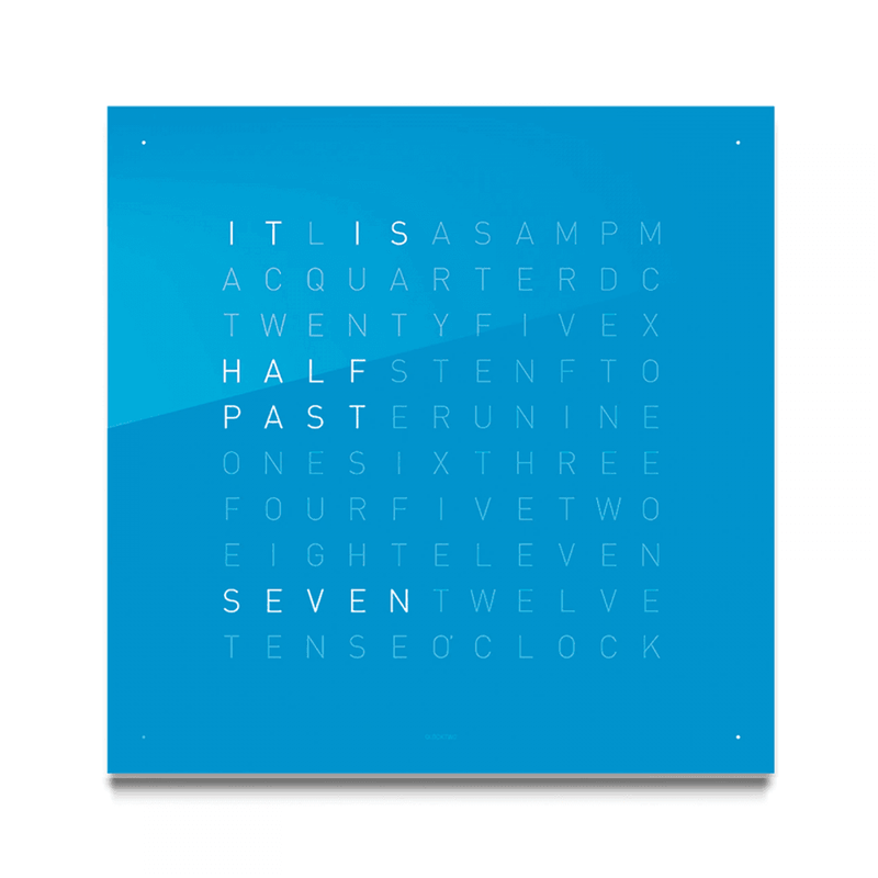 QLOCKTWO CLASSIC Acrylic Blue Candy Wall Clock 45cm - FCENBC. QLOCKTWO CLASSIC Clocks 45 x 45 cm makes you stop and look at time in a different way. Each piece is unique and unfolds its impressive visual effect as a design or art object. Every QLOCKTWO CLASSIC piece is signed and individually numbered using laser engraving.