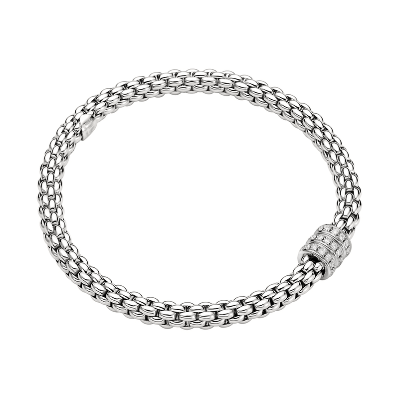 FOPE Solo 18ct White Gold Bracelet With Three White Gold Diamond Set Rondels, 62306BX_PB_B_BBB_00M