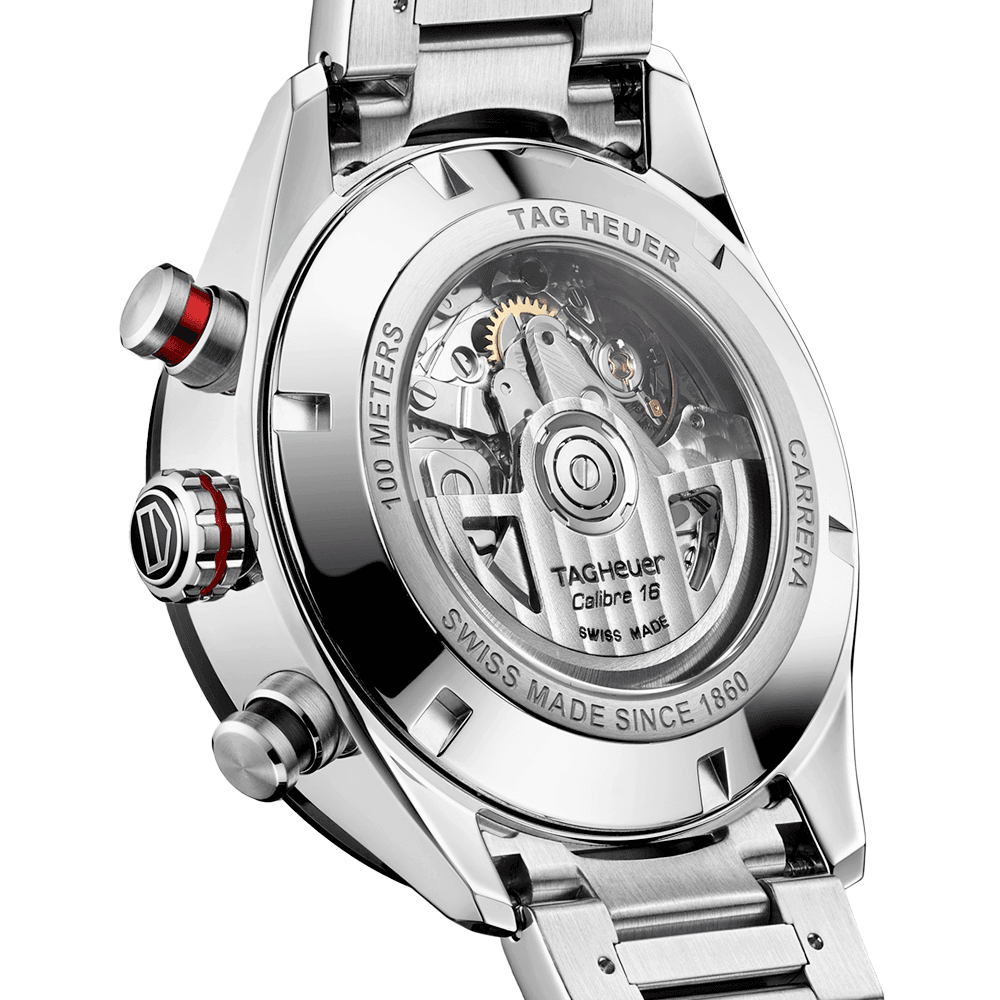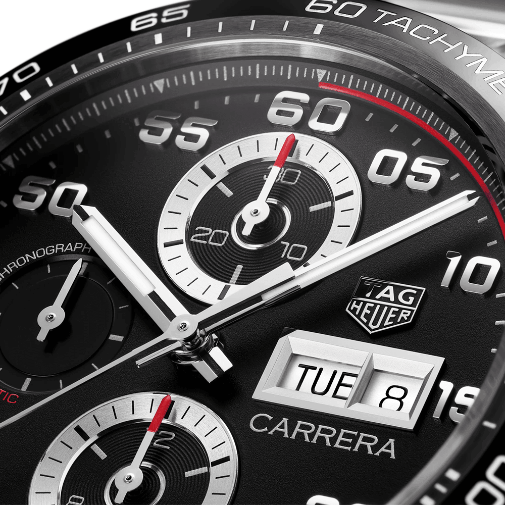 Carrera 44mm Black Dial Automatic Chronograph Bracelet Watch