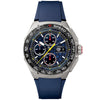 TAG Heuer Formula 1 Chronograph 44mm Oracle x Red Bull Racing Edition Watch CBZ2080.FT8091. Titanium 44mm case and carbon bezel all on a blue rubber strap. This men's sports watch has a blue-chequered dial with red & yellow detail, blackened hands and hour markers, date display at the 3 o'clock position. Sapphire crystal glass and water resistant up to 200m. Power reserve up to 42 hours. TAG Calibre 16 automatic chronograph movement.