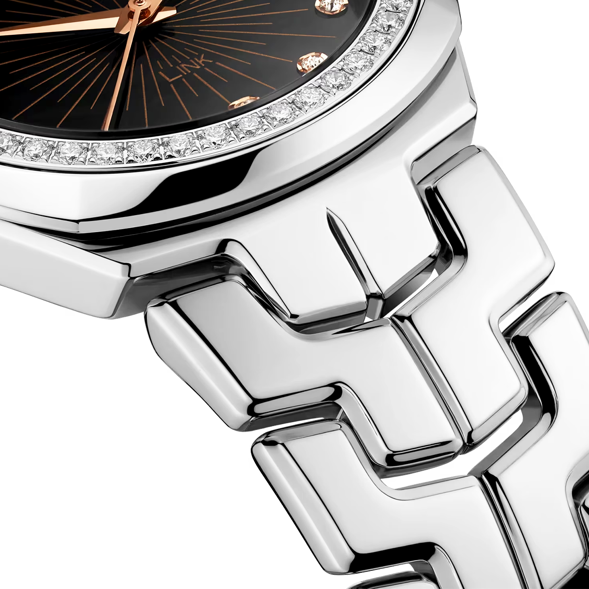 Link 32mm Black Diamond Dial & Bezel Ladies Bracelet Watch