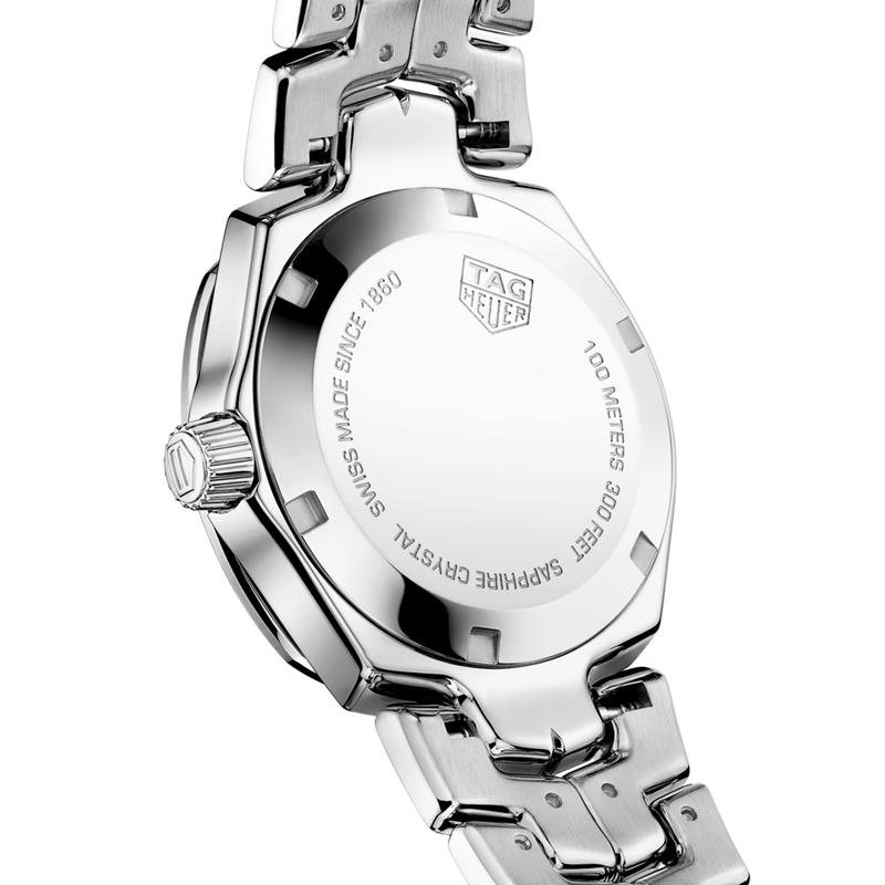 TAG Heuer Link 32mm Black Diamond Dial & Bezel Ladies Bracelet Watch WBC131G.BA0649. Stainless steel 32mm case and diamond set bezel all on a stainless steel link bracelet. This ladies watch has a black dial with rose gold sunburst pattern, 12 diamond set hour markers and date display at the 3 o'clock position. Water resistant up to 100m and sapphire crystal glass. Quartz movement.