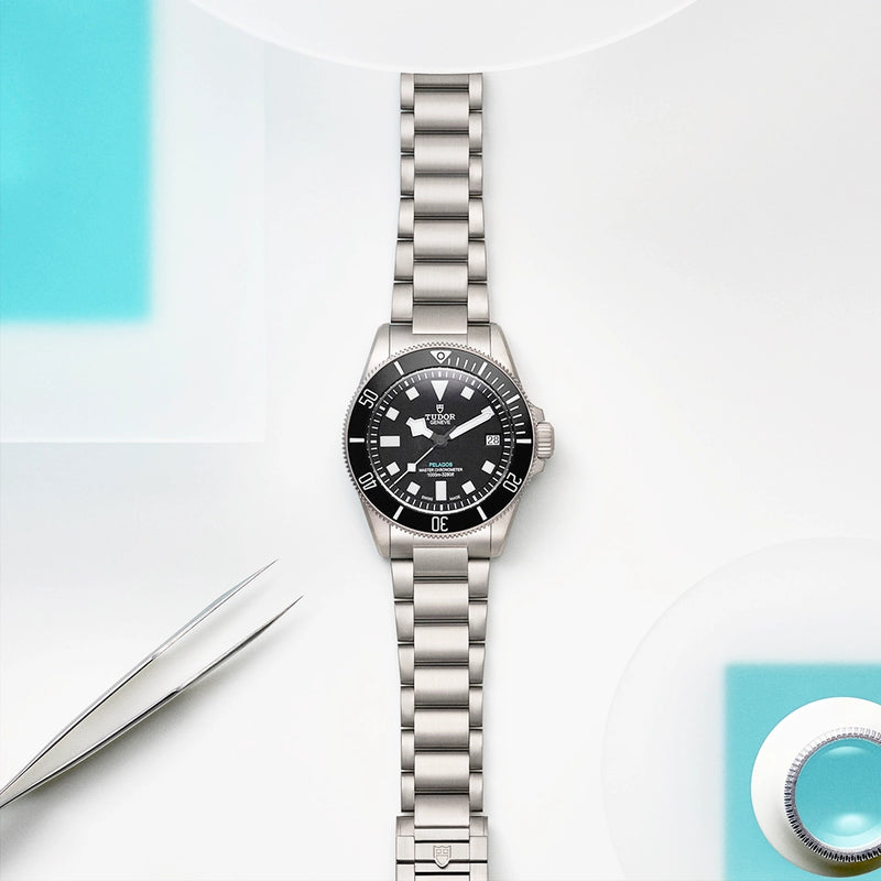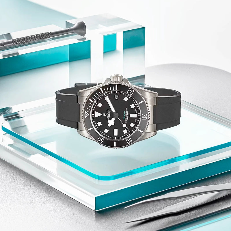 TUDOR Pelagos Ultra 43mm Titanium Black Dial Mens Automatic Watch M2543C1A7NU-0001. Titanium 43mm case and black ceramic bezel all on a titanium bracelet with micro-adjustable clasp function, comes complete with additional black rubber strap. This mens watch has a black dial with luminous applied hands and hour markers, date display at the 3 o'clock position. Waterproof up to 1000m and sapphire crystal glass. Automatic movement.